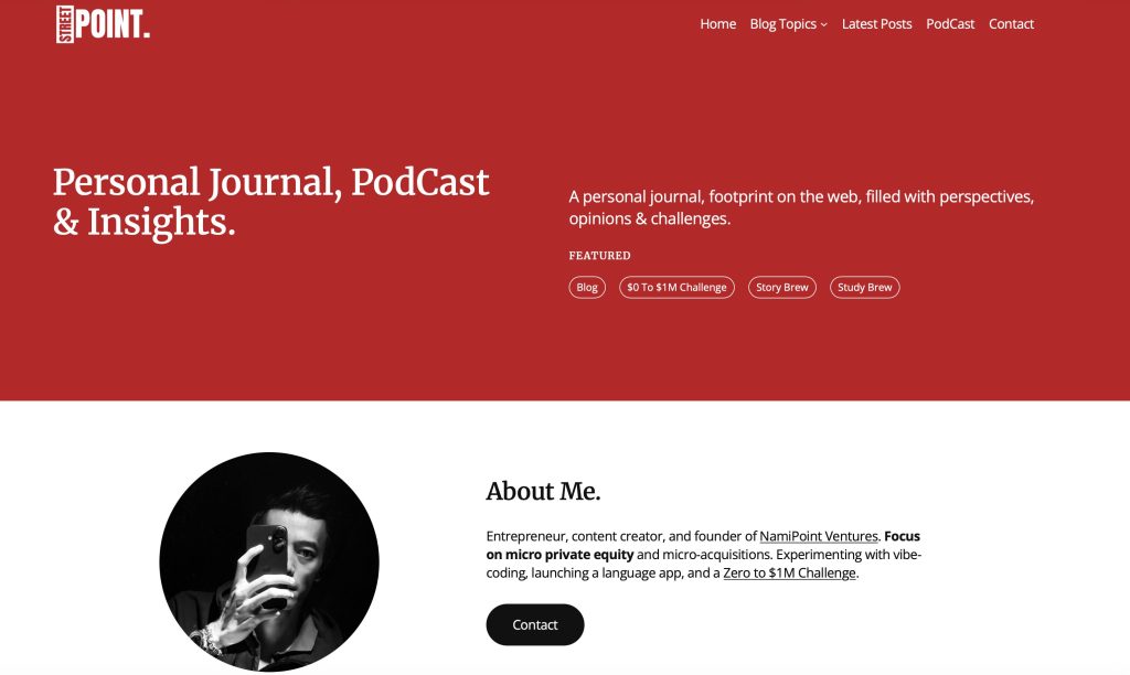 StreetPoint isn’t built to live on ad revenue or affiliate commissions. It’s a statement. A record. A place where I can think out loud without having to dress it up for a mass audience.
